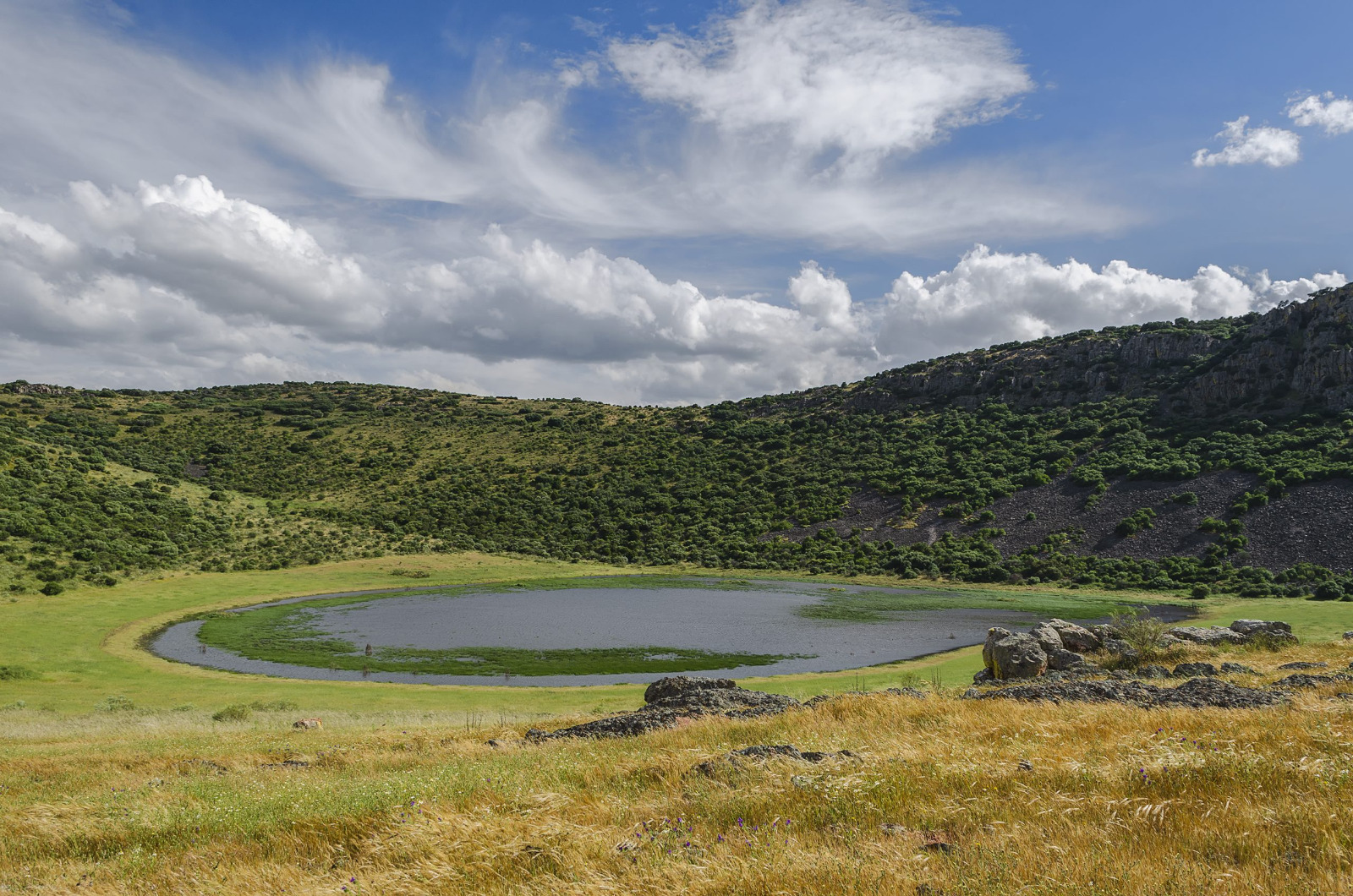 Visita guiada interpretativa por algunos de los paisajes volcánicos más singulares de la zona. A lo largo del recorrido conoceremos el Maar de Cervera, ejemplo de la explosiva interacción entre magma y agua; los Baños del Barranco, donde el agua y la geología han marcado el uso tradicional del territorio; y el volcán Columba, con sus coladas y formaciones basálticas.